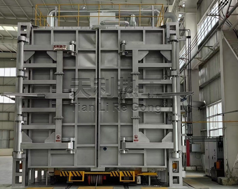 3.利用可移動式后墻和臺車、爐體的配合實現(xiàn) 15m 和 10m 長度容積的轉(zhuǎn)換,處理不同長度的工件。